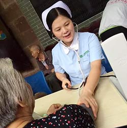 “救死扶伤”是医务工作者的天职,广州圣丹福医院经常组织去往山区贫困家庭送健康、探访帮助孤寡老人检查身体、定期走进社区义诊等公益活动。而这些公益活动中,陈红美往往是不惧辛劳的“排头兵”:她或是为老人测量血压,或帮助孤寡老人推拿按摩,或动手为行动不便的老人打扫卫生……如果碰到血压高的老人,陈红美轻声细语的说着注意事项并给出中肯的建议;帮助老人按压穴位时,脸带微笑的问着“阿公阿嬷”们的感受,和风细雨的态度让老人们直呼“这么好的女孩怎么不是我家阿女?”