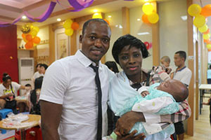 在现场,有一个特殊家庭尤为引人关注,他们就是来自阿尔及利亚的外国友人SYLLA一家三口。“那天在医院的公众平台上看见有今天的活动,时间就打电话给工作人员报了三个名额。来中国这么多年,还是头一次参加这样的活动,这么多人一起提前庆祝中国的中秋节,很开心,也感谢刘娟主任给了我两个小宝贝。”SYLLA用一口流利的普通话跟大家分享着她的喜悦。SYLLA女士的报喜,并不是广州圣丹福医院的个例。无独有偶,今天活动现场还分享了好孕视频,视频主角范女士亲自上台分享自己的好孕经历。