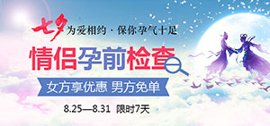 即日起预约于8月25日至8月31日来院进行孕前/婚前检查(原价1121.1元,优惠价333.4元),均可免费获赠男性精液检查一次(原价99元),建议夫妻同行来院检查。