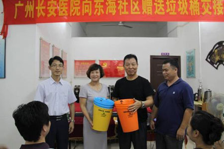 日前,广州圣丹福医院向石牌街东海社区捐赠了1000套家庭用分类垃圾桶,以此支持石牌街的垃圾分类宣传推广工作,希望市民能全员行动,动手分类垃圾,从源头减少垃圾。