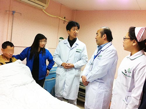 蔡院长看望曾先生,梅天佑主任向蔡院长陈述其病情