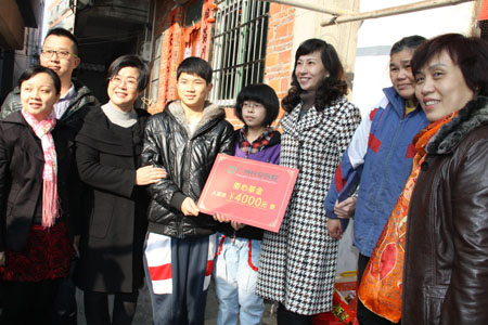 吴葵好丈夫早逝,孀居多年,且患有程度的精神障碍疾病,膝下只有一对儿女,由于失去经济来源,家庭经济负担沉重得让人喘不过气来。姐姐今年约20岁,现在就读于华南师范大学。虽然是大二的学生了,却形容纤瘦,衣着单薄,只穿着一双塑胶拖鞋,像个高中学生。妇联主席忍不住心疼的问:“现在天这么冷,孩子你穿这么少,会不会冻感冒?”说罢几乎忍不住脱下自己的大衣给孩子穿上。
