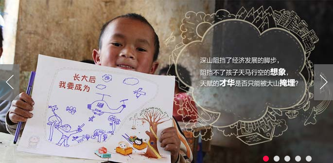 在大山的一边,有这样一群孩子,因为命运使然或物资匮乏,他们无法拥有孩子们平常不过的幸福—读书,他们稚嫩的脸庞挂着纯朴而天真的笑脸,梦想着有一天能够通过书籍走出大山,看看外面的,拥有这些的我们不甚在意,他们却需要仰望。