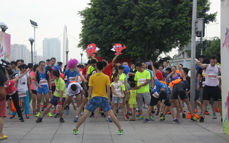 穿着“孕妇装”,3名“孕爸”也来参与这次公益跑