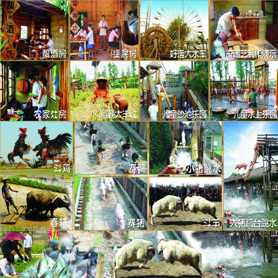 项目表演类:农家六绝表演(小猪跳水、鸭子竞赛、趣怪斗鸡、赛猪、宠物狗表演、大笨猪高台花式跳水)